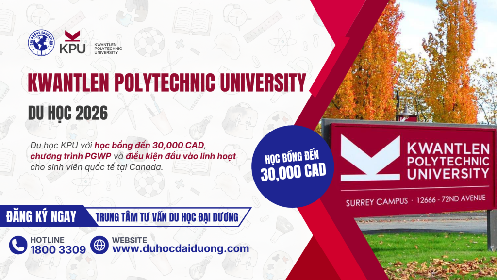 Du học không chỉ là trải nghiệm học tập – đó là cơ hội đầu tư cho tương lai nghề nghiệp toàn cầu. Khi bạn chọn Kwantlen Polytechnic University (KPU), bạn không chỉ được học theo mô hình “Learning by Doing” (học đi đôi với hành) mà còn có thể nhận học bổng lớn, giúp giảm áp lực tài chính và mở ra con đường sự nghiệp rộng mở.