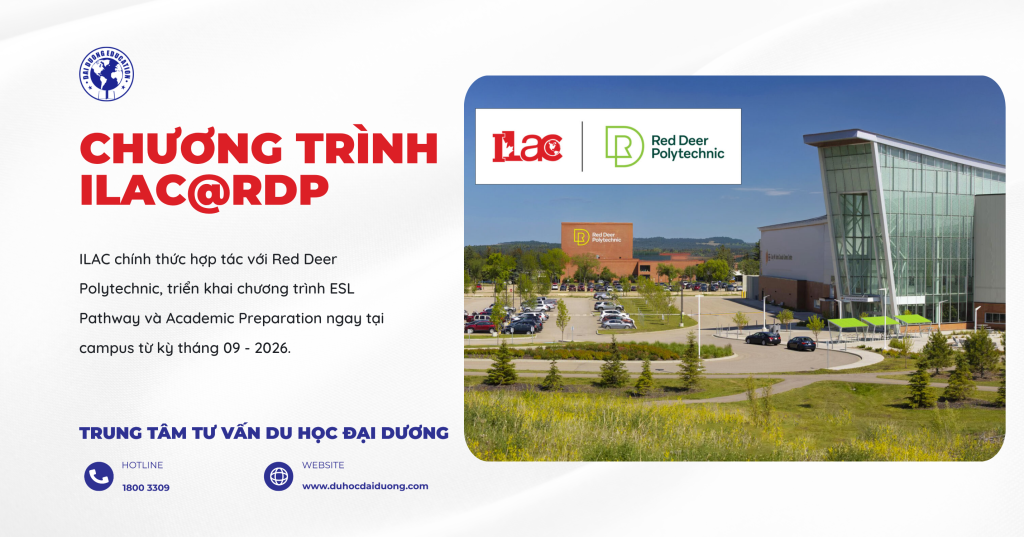 ILAC Education Group và Red Deer Polytechnic (RDP) vừa chính thức công bố chương trình hợp tác mới mang tên ILAC @ Red Deer Polytechnic, dự kiến triển khai từ tháng 09/2026 tại thành phố Red Deer, Alberta, Canada. Đây là một cập nhật rất đáng chú ý đối với học sinh và phụ huynh đang tìm kiếm lộ trình du học Canada thực tế, học phí hợp lý và có hướng chuyển tiếp rõ ràng vào college.