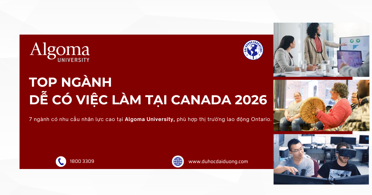 Nếu bạn quan tâm đến các ngành học tại Algoma University hoặc đang tìm kiếm chương trình phù hợp với nhu cầu việc làm tại Canada, Dai Duong Education sẵn sàng hỗ trợ bạn từ bước chọn ngành, chọn trường, chuẩn bị hồ sơ cho đến khi ổn định cuộc sống tại Canada.