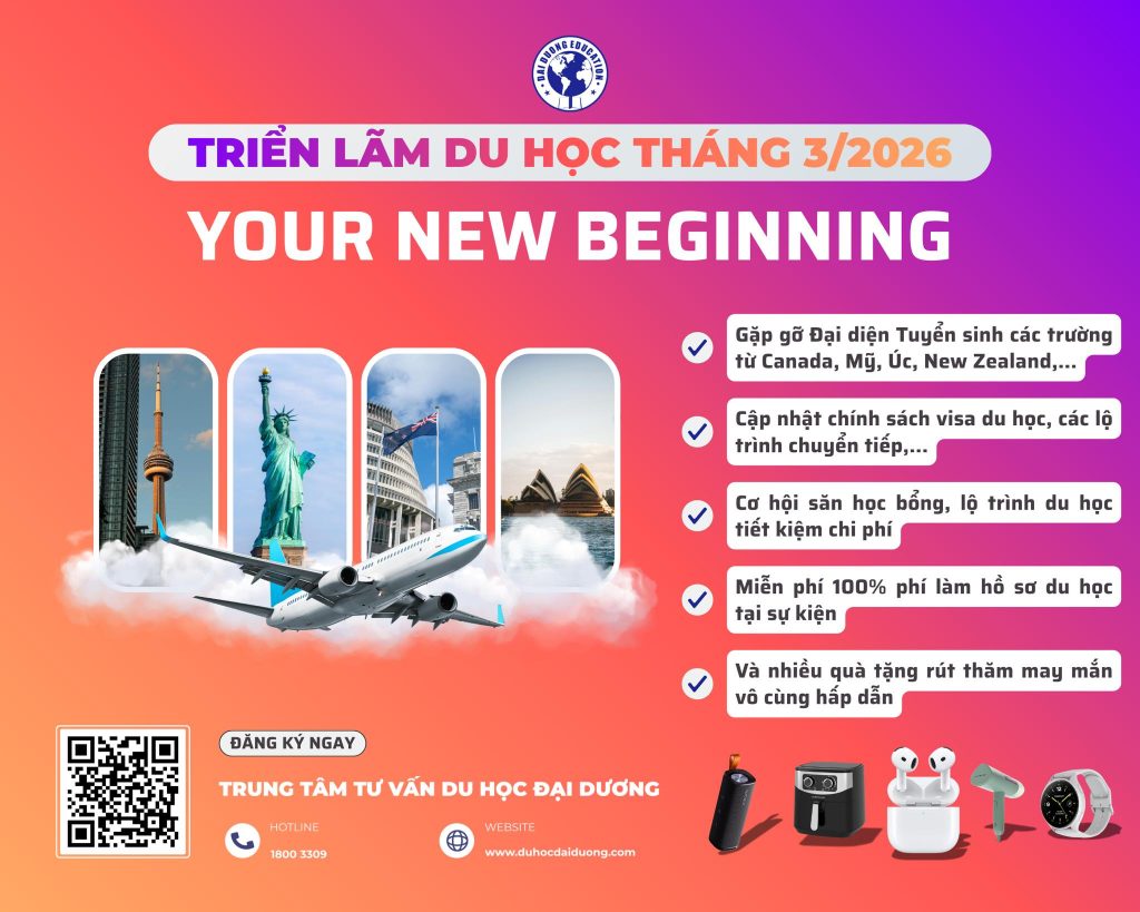 Trong bối cảnh ngày càng nhiều học sinh – sinh viên Việt Nam lựa chọn con đường du học để mở rộng cơ hội học tập và nghề nghiệp, các sự kiện tư vấn du học trực tiếp đang trở thành điểm đến quan trọng để phụ huynh và học sinh cập nhật thông tin chính xác. Triển lãm Du học Quốc tế 2026 – “Your New Beginning” được tổ chức bởi Trung tâm Tư vấn Du học Đại Dương (Dai Duong Education) tại TP.HCM hứa hẹn mang đến nhiều thông tin hữu ích và cơ hội kết nối trực tiếp với các trường quốc tế.